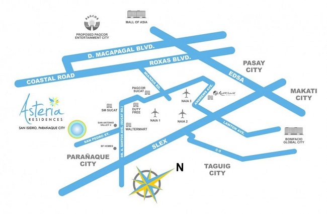 From the Sucat Exit, turn right, travel straight, then turn left at the San Antonio Valley 2 entrance (across Waltermart Sucat)